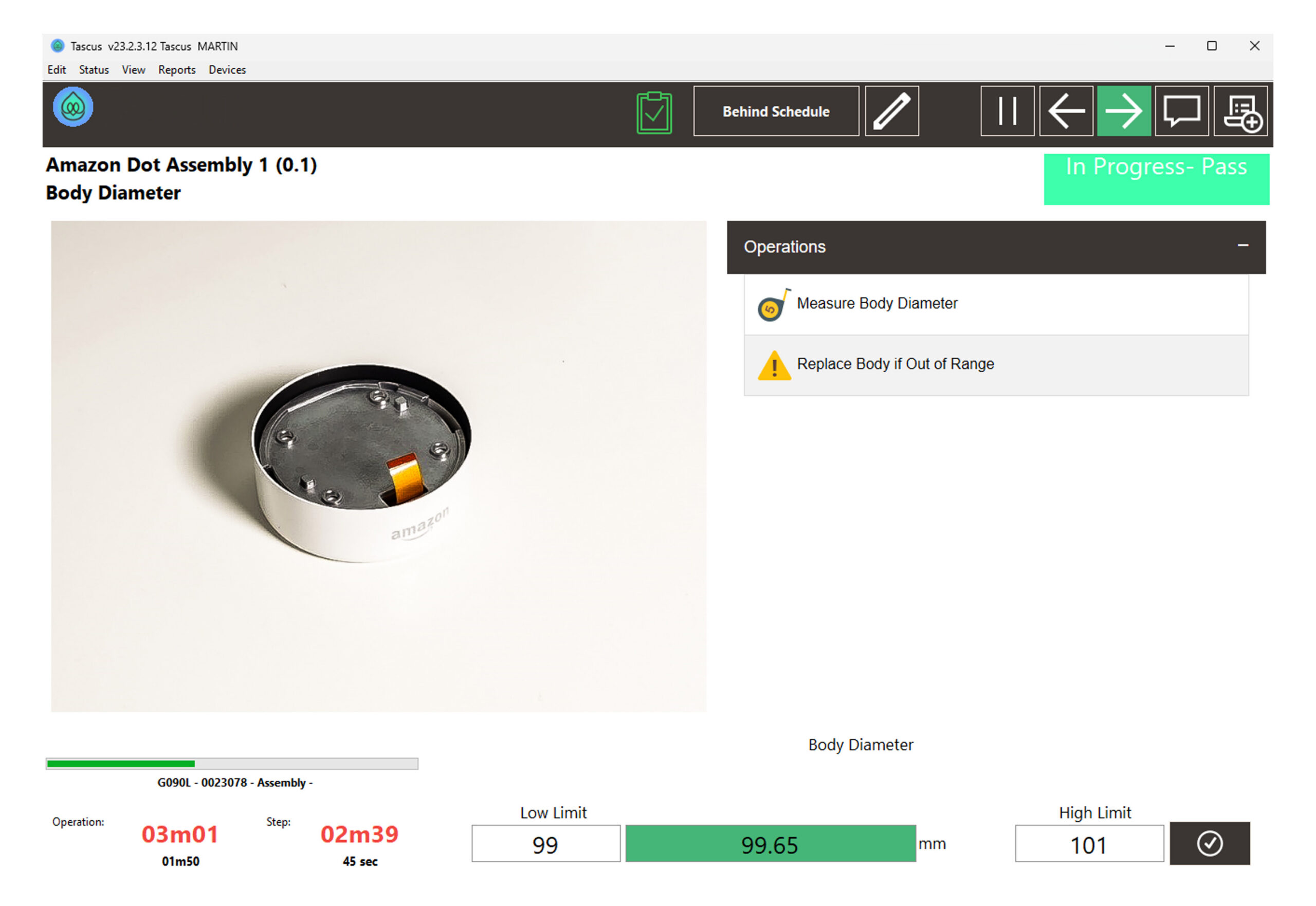 As each step is carried out, Tascus records what happened and flags any deviations as work progresses. It keeps the build aligned with the defined standard by directing the work in front of the operator.